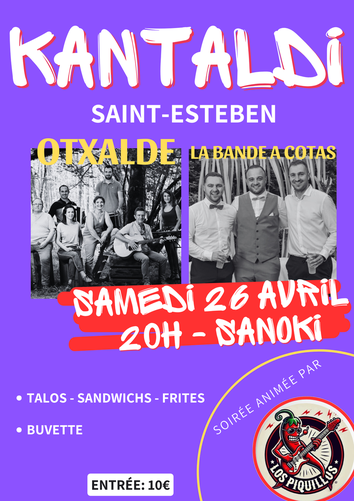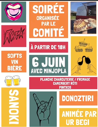 Le comité Beti Xutik organise, en partenariat avec le traiteur Minjopla et le groupe de chant Ur Begi, une soirée conviviale.